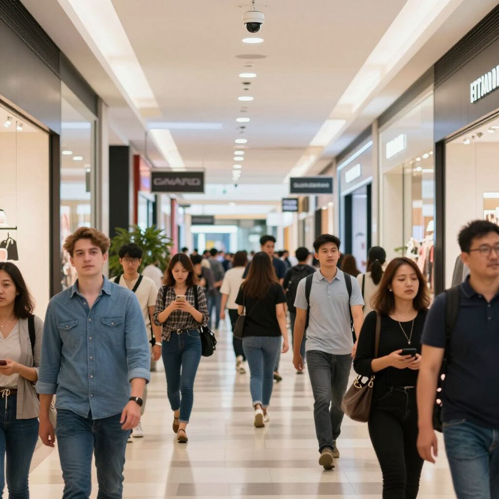Op maat gemaakte beveiligingsoplossing met meerdere camera’s en alarmsensoren in een druk winkelcentrum.
