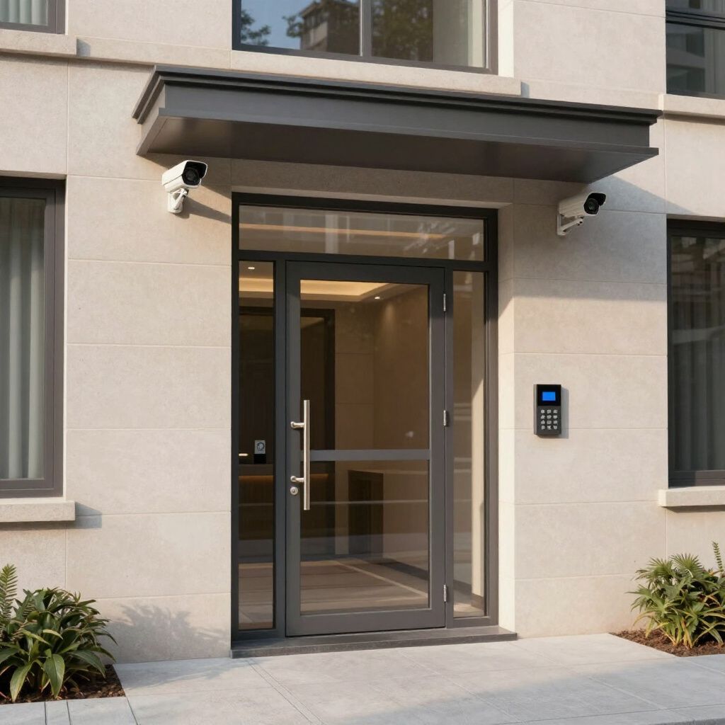 Camerabewaking en alarmsysteem geïnstalleerd voor een wooncomplex met meerdere appartementen.