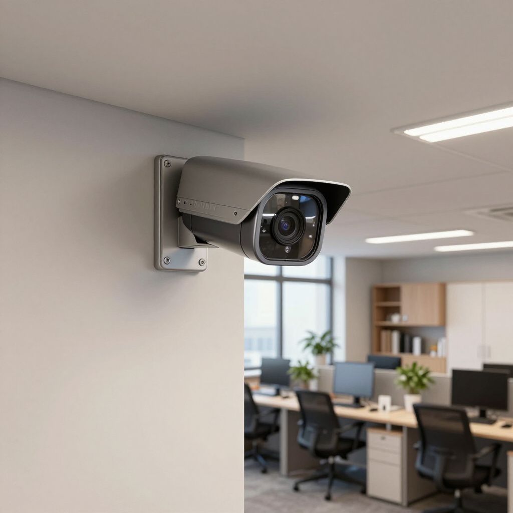 Installatie van een geïntegreerd camerasysteem en alarmsysteem voor een middelgroot kantoorgebouw.